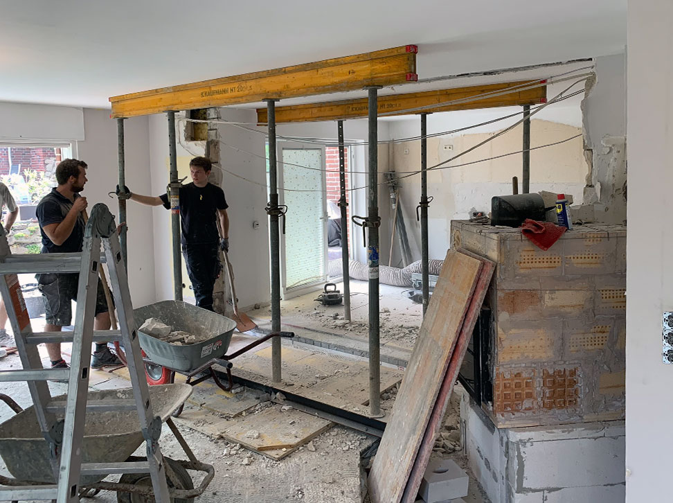 Einbau von Stahlträgerkonstruktionen bei tragenden Innen- und Außenwänden zur Öffnung oder Verbindung kleiner Räume zu einem größeren Raum